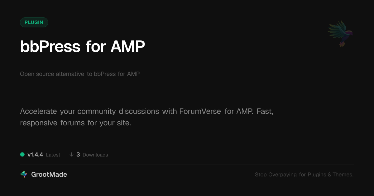 | Tags | responsive, seo, forums, advanced custom fields clone, download forms, community forum acceleration, developer forum tool, forum plugin speed, mobile forum optimization, dynamic web elements, Fast Loading, Mobile Friendly, Conversion, Analytics, Affiliate, Cta, Discussion, Amp, performance, discussion board performance, WP plugin, recent profile visitors, profile tab builder, Community, classifieds tool |