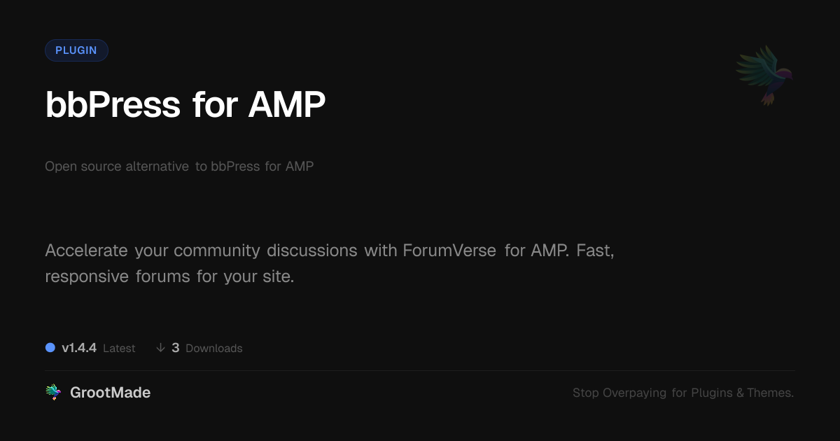 GrootMade is not affiliated with bbPress for AMP and provides an open-source alternative.