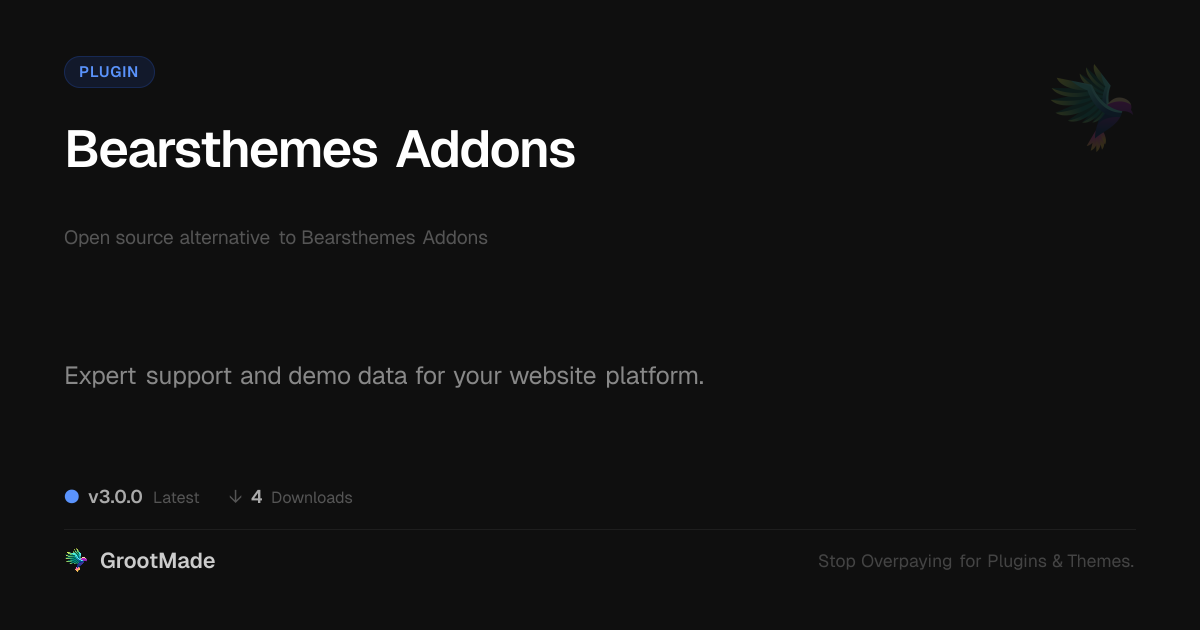 GrootMade is not affiliated with Bearsthemes Addons and provides an open-source alternative.