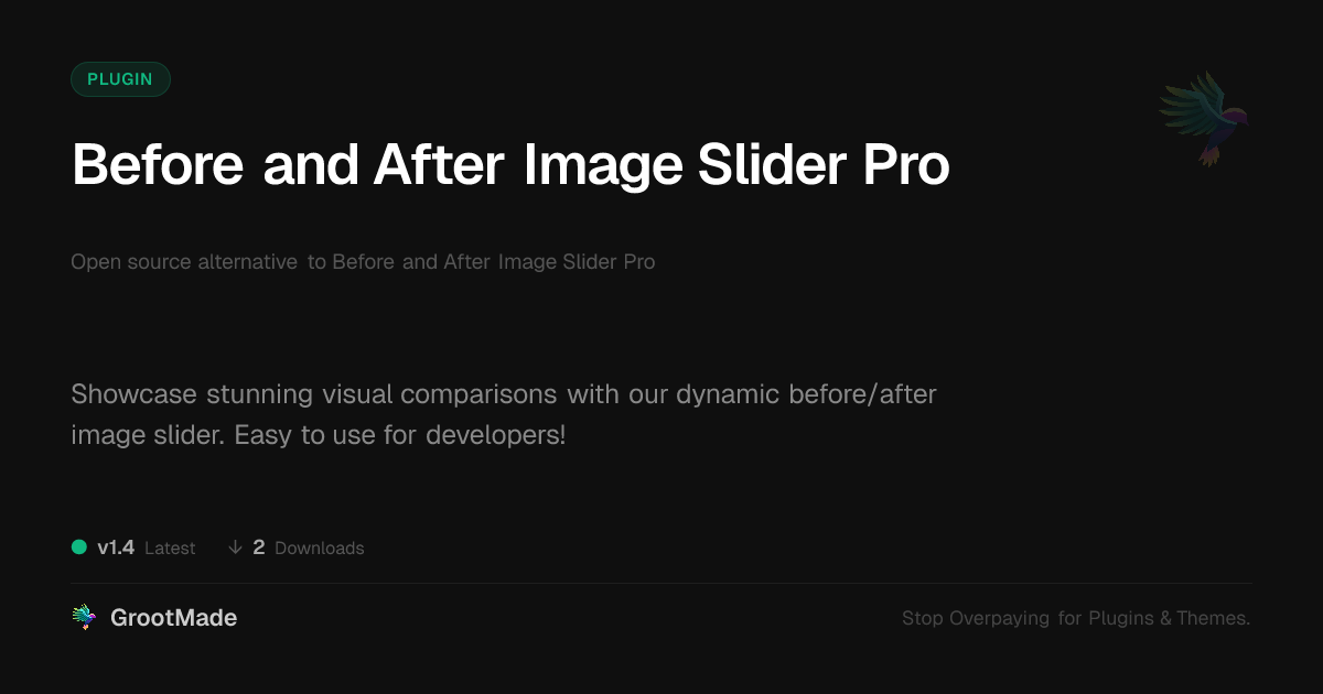 | Tags | product showcase, image gallery, photography, visual effects, image comparison, creative image slider solutions, image comparison slider development, responsive image slider plugin, visual transformation tool, web development image effects, before after, Comparison Slider, Photo Slider, Transformation Slider, digital identity control, directory comparison, image slider |