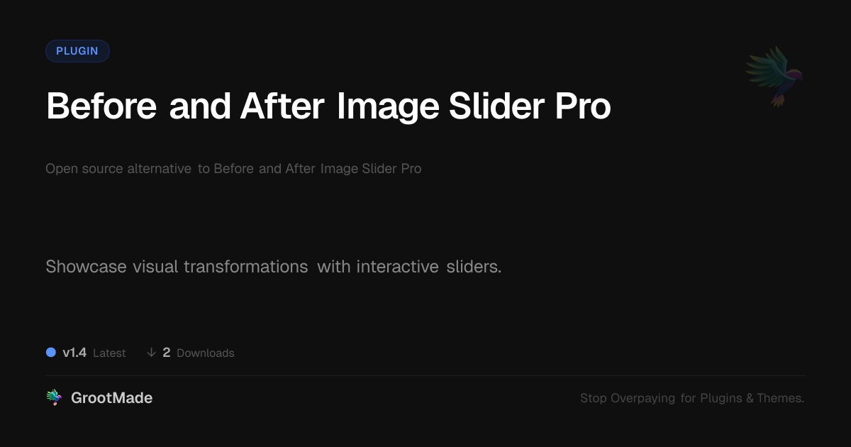 GrootMade is not affiliated with Before and After Image Slider Pro and provides an open-source alternative.
