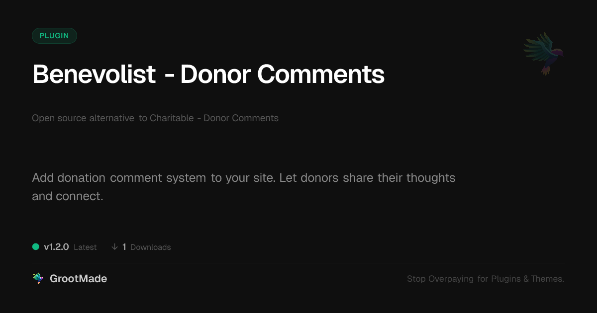 GrootMade is not affiliated with Charitable - Donor Comments and provides an open-source alternative.