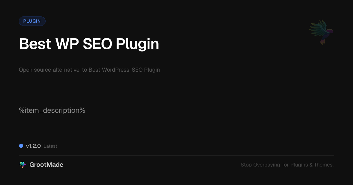 GrootMade is not affiliated with Best WP SEO Plugin and provides an open-source alternative.