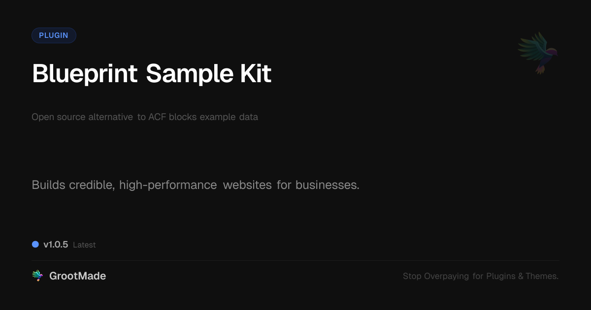 GrootMade is not affiliated with ACF blocks example data and provides an open-source alternative.