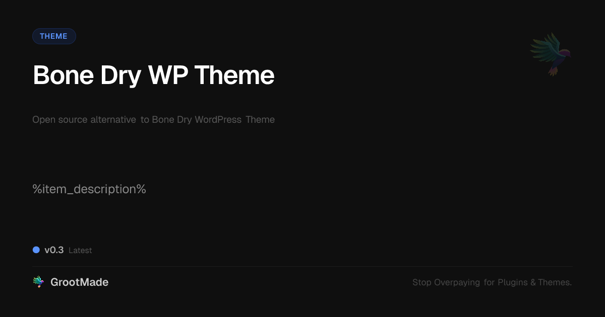 GrootMade is not affiliated with Bone Dry WP Theme and provides an open-source alternative.