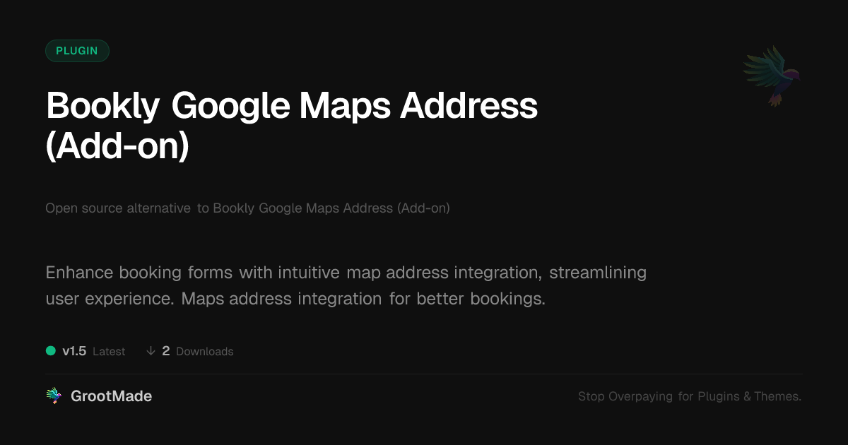 | Tags | maps, address input, booking form addon, google maps wp, map address integration, wp booking extension, domain blocker, Scheduling, Appointment, Google Maps, Location, Address, Reservations, Booking, multilingual website plugin, geolocation, directory comparison, integration, user contact form |