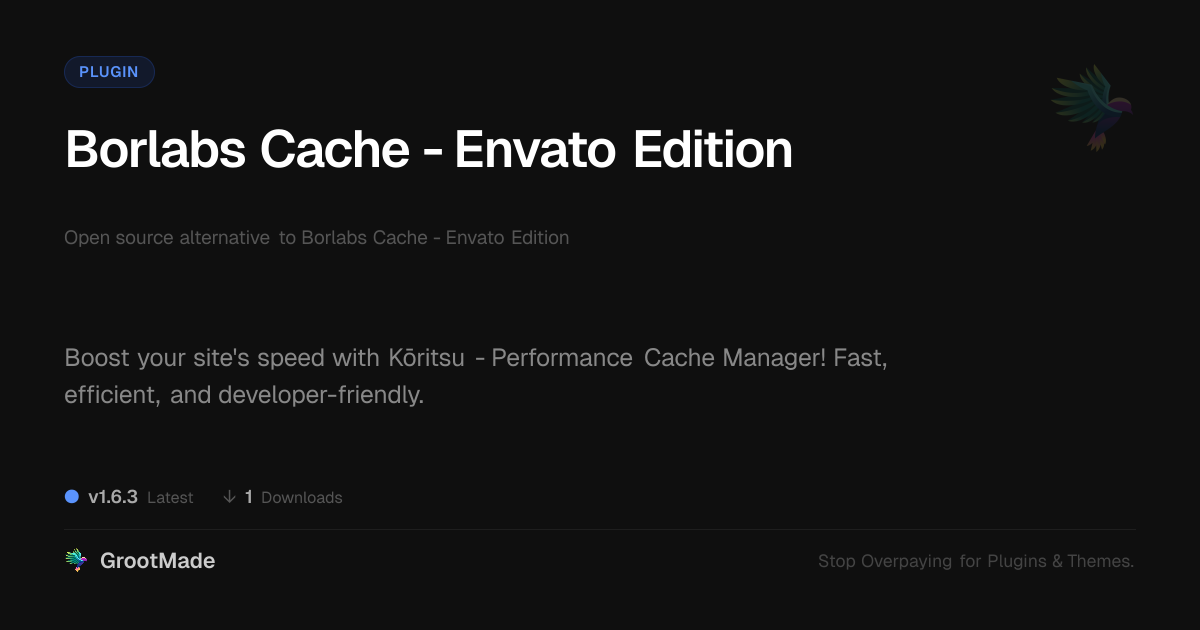 GrootMade is not affiliated with Borlabs Cache - Envato Edition and provides an open-source alternative.