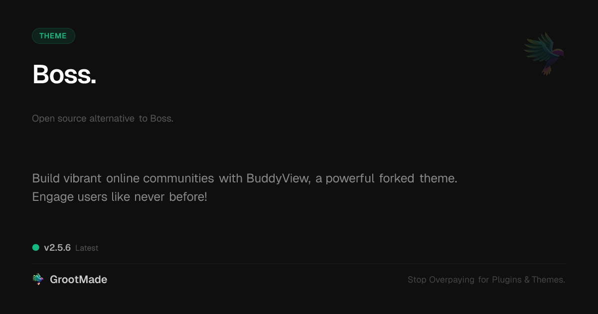 | Tags | user profiles, member directory, online community platform, forums, community theme, social networking theme, group management theme, download forms, advanced theme building, dynamic web elements, seo theme, customizable site builder, media theme, Dark Mode, Groups, Activity Feed, online community safety, profile tab builder, Community, Buddypress, Social Network, responsive, e-commerce feature |