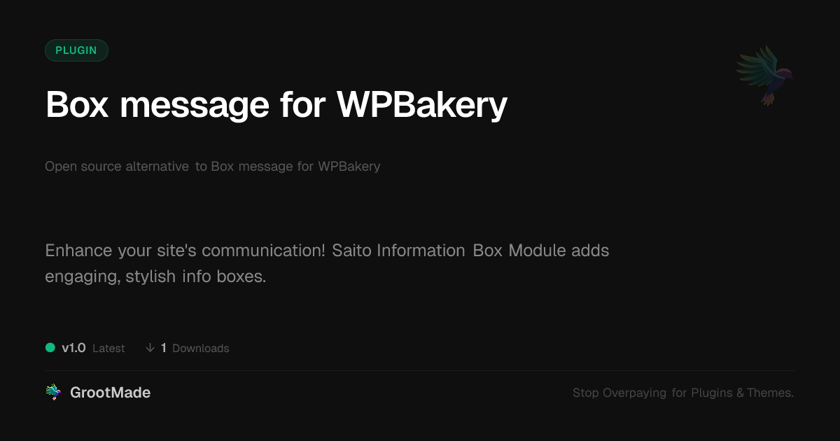 GrootMade is not affiliated with Box message for WPBakery and provides an open-source alternative.