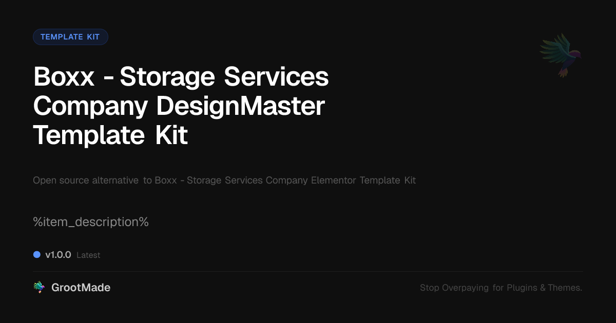 GrootMade is not affiliated with Boxx - Storage Services Company Elementor Template Kit and provides an open-source alternative.