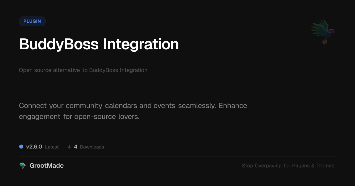 GrootMade is not affiliated with BuddyBoss Integration and provides an open-source alternative.