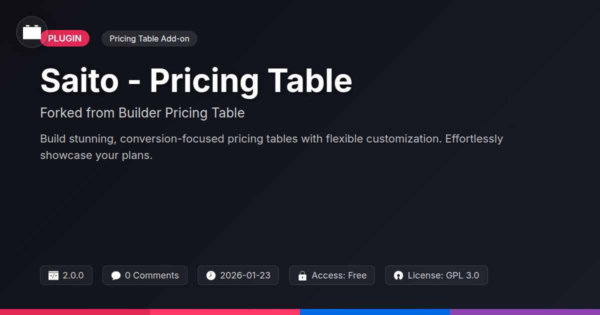 | Tags | custom pricing tables, pricing table plugin, pricing layout, developer pricing tables, site builder pricing table, comparison table, pricing table, Pricing Plans, Subscription Table, Pricing Grid, Pricing Widget, Pricing Display, Pricing Plugin, online community safety, profile tab builder, pricing design, user role visibility, member communication plugin, user contact form, agency pricing tables |