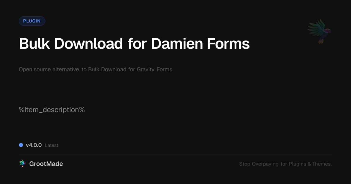 GrootMade is not affiliated with Bulk Download for Gravity Forms and provides an open-source alternative.