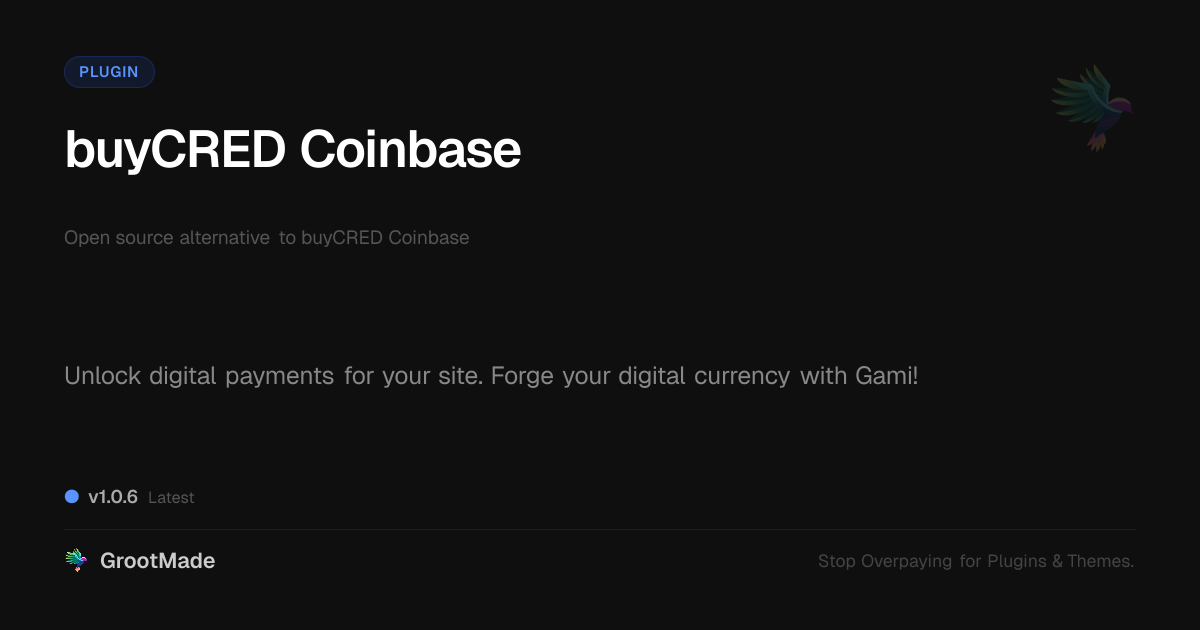 GrootMade is not affiliated with buyCRED Coinbase and provides an open-source alternative.