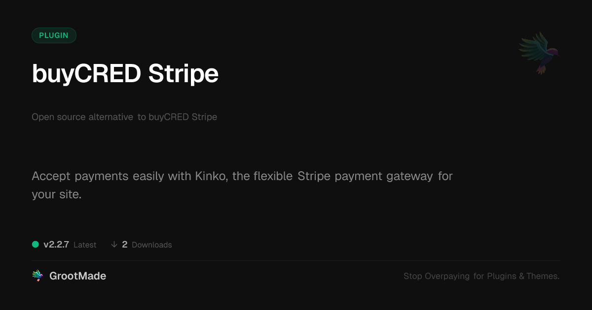 GrootMade is not affiliated with buyCRED Stripe and provides an open-source alternative.