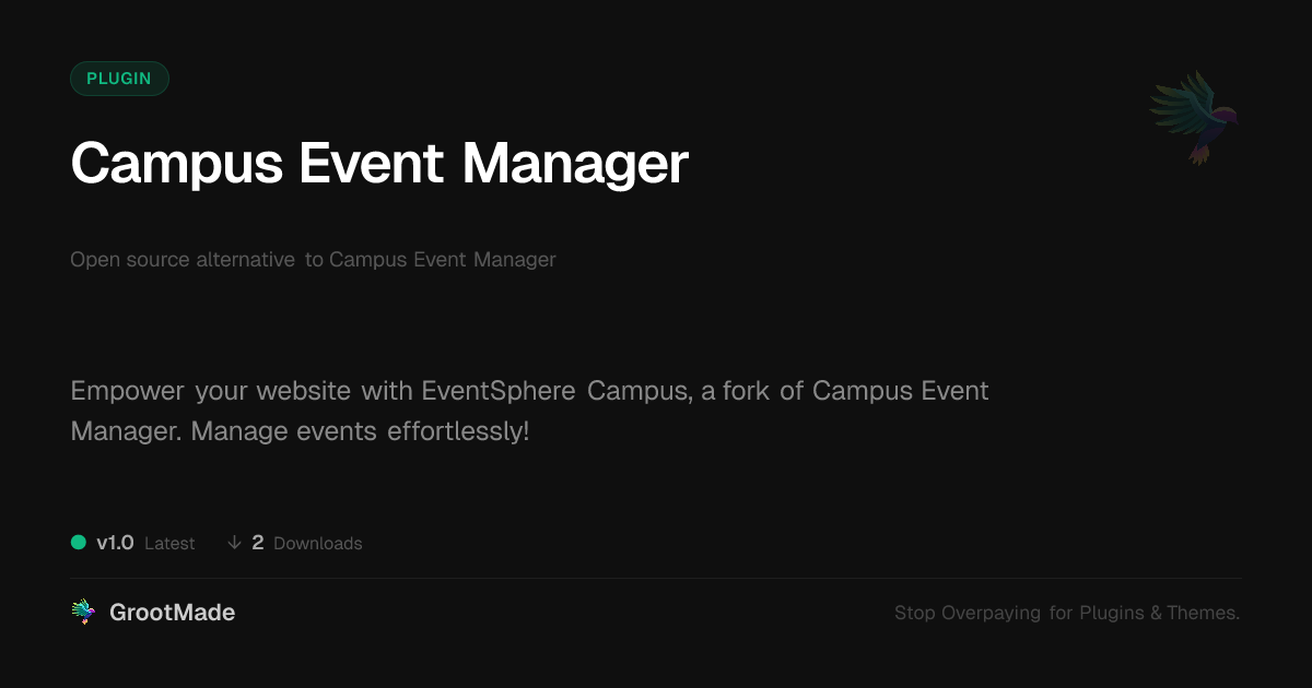 | Tags | open source events, Organizer, WP event calendar, developer real estate theme, Faculty, data visualization tools, Scheduling, developer tools plugin, ajax page load, Events, user contact form, multilingual website plugin, profile tab builder, e-commerce plugin features, Management, sidebar menu, education, campus events, content spotlight plugin, Students, Campus, University, website event organizer, Calendar, event management plugin |