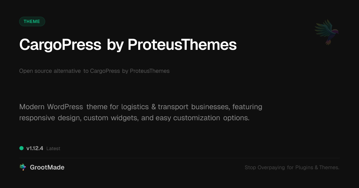 GrootMade is not affiliated with CargoPress by ProteusThemes and provides an open-source alternative.