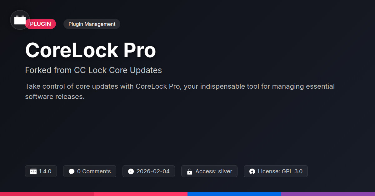 | Tags | Developer Tools, Update Management, site maintenance, Dashboard, user role visibility, WP plugins, core updates, user contact form, open source, plugin management, Digital Downloads, profile tab builder, member communication plugin, admin tools, WP security, Backend, Update Control, gallery plugin development |