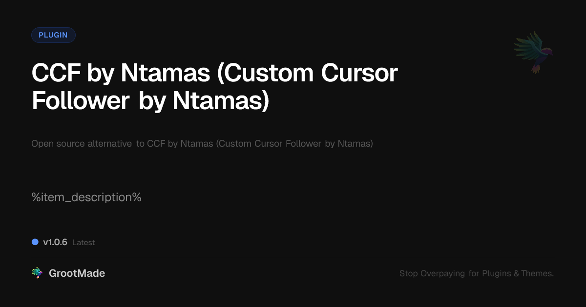 GrootMade is not affiliated with CCF by Ntamas (Custom Cursor Follower by Ntamas) and provides an open-source alternative.