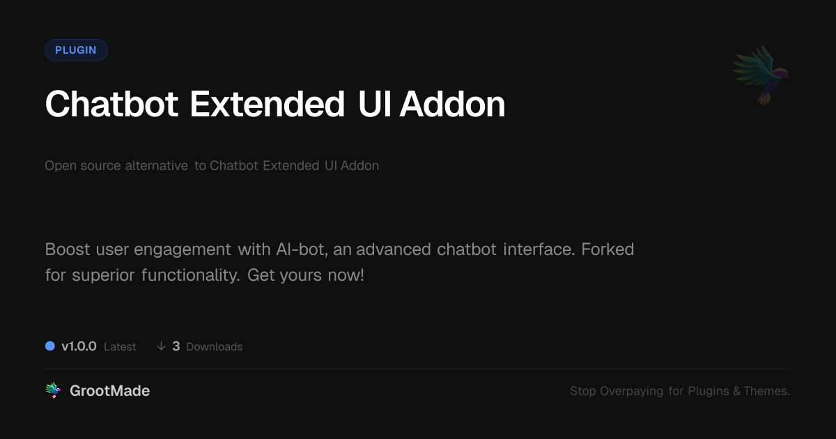 GrootMade is not affiliated with Chatbot Extended UI Addon and provides an open-source alternative.