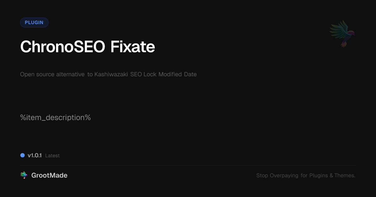 GrootMade is not affiliated with Kashiwazaki SEO Lock Modified Date and provides an open-source alternative.