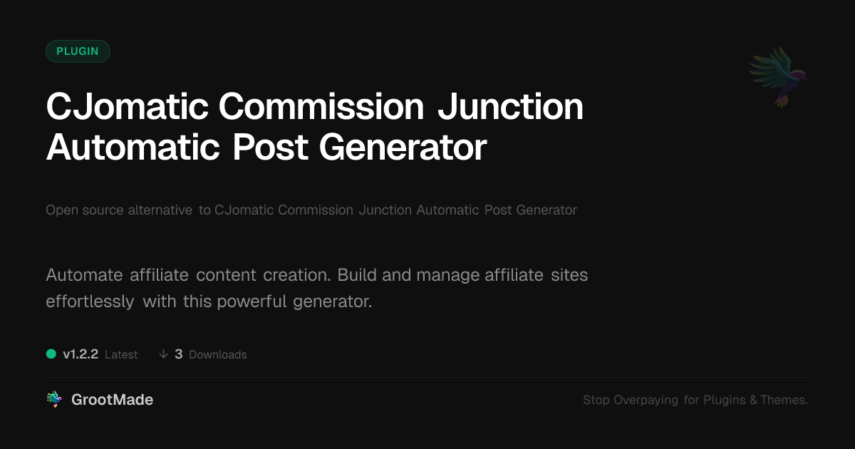 | Tags | affiliate marketing, content automation, content automation tool, auto blogging, seo, automatic post generator, affiliate content generator, code-driven content, Amazon Affiliate, monetization, affiliate links, affiliate marketing plugin, product reviews, WP plugin, content generation, recent profile visitors |