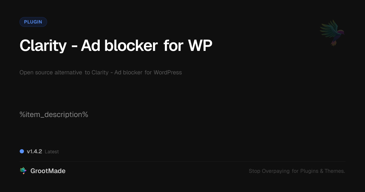 GrootMade is not affiliated with Clarity - Ad blocker for WP and provides an open-source alternative.