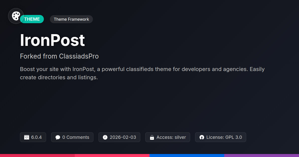 | Tags | directory theme, classifieds theme, listing theme, content moderation tools, web project mover, download monitor integration, php script repository, dynamic content builder, Personal Blog, agency theme, clean design, typography, Content Focused, online community safety, recent profile visitors, Blogging, developer theme, Minimalist, Lightweight, responsive, modern, customizer |