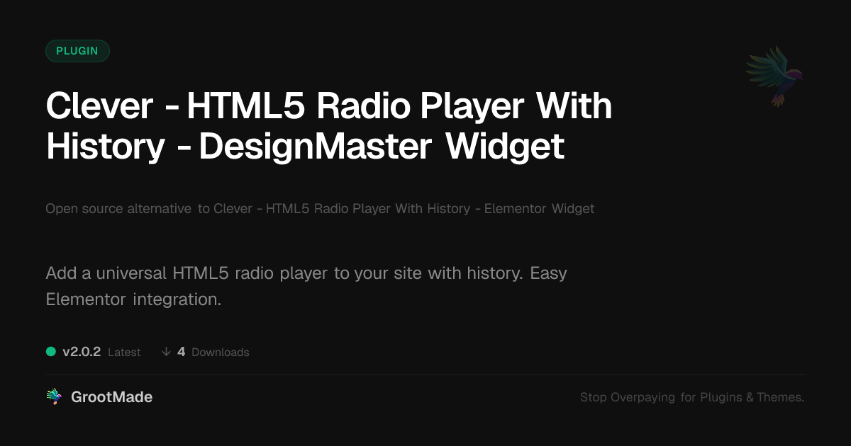| Forked from | Clever - HTML5 Radio Player With History - Elementor Widget |