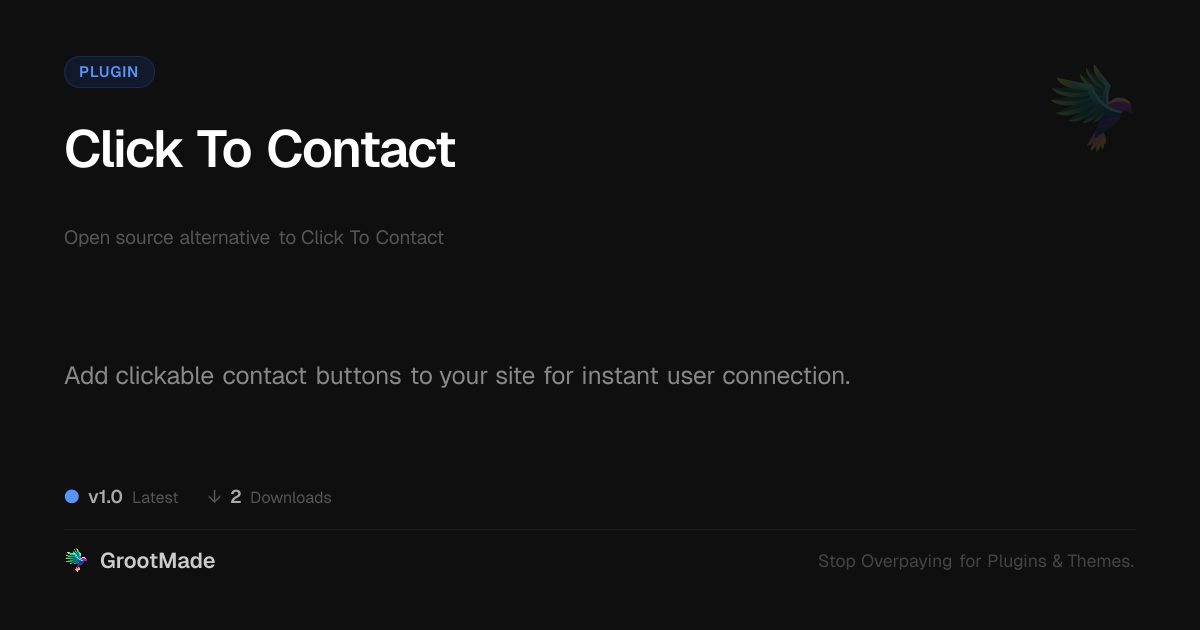 GrootMade is not affiliated with Click To Contact and provides an open-source alternative.