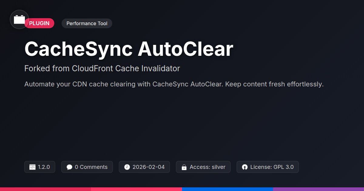 | Tags | Optimization, Invalidator, Cdn, visual asset security, developer, Aws, image copyright tool, WP, open source plugin, user contact form, Digital Downloads, profile tab builder, performance, website performance, Cloudfront, member communication plugin, Cache, downloadable product plugin, cache invalidation, cdn cache, Speed |