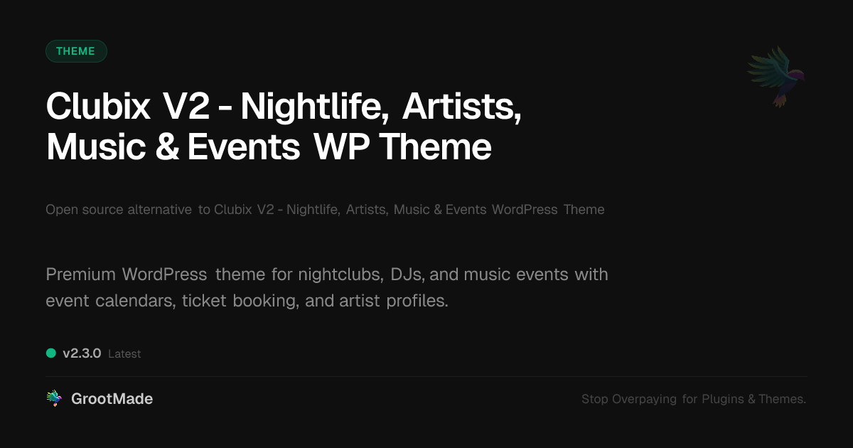 | Forked from | Clubix V2 - Nightlife, Artists, Music & Events WP Theme |