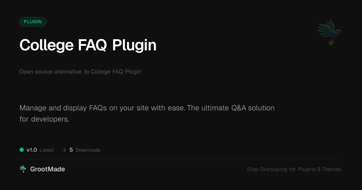 | Tags | faq plugin, Knowledgebase, College, Answers, default gallery addon, Support, question and answer, Student, Questions, user contact form, digital delivery tool, profile tab builder, e-commerce plugin features, Faq, education, digital identity control, open source tool, Help, University, plugin development, website information |