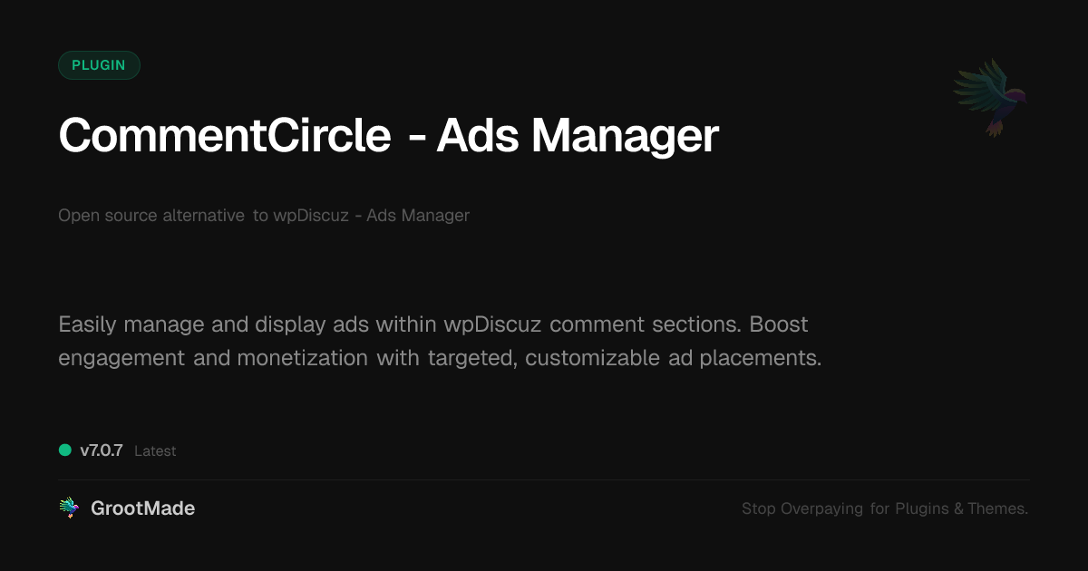| Tags | forums, download forms, php script repository, website performance optimization plugins, gaming theme, content security for websites, payment links, php agency toolkit, Comments, Engagement, Revenue, Wpdiscuz, Ads, monetization, WP plugin, online community safety, recent profile visitors, Community, ad management, user contact form |