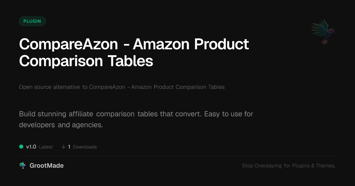 | Tags | affiliate marketing, product comparison plugin, affiliate comparison tables, affiliate monetization, website tables, php object cache, Affiliate, Tables, Amazon, Products, Comparison, Comparison Tool, Pricing, discussion board performance, digital identity control, site plugin, affiliate marketing tools, WC, recent profile visitors, ecommerce, user role visibility |