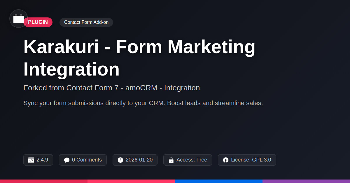 | Tags | form integration, lead generation plugin, form to crm integration, website lead capture, sales pipeline, customer relationship management, Contact Form 7, Amocrm, lead generation, crm, marketing automation, directory comparison, contact forms, pagination addon, profile tab builder, Business Automation, member communication plugin, user role visibility, user contact form |