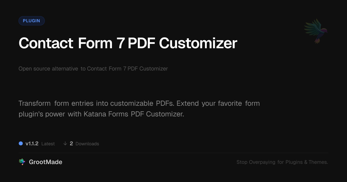 GrootMade is not affiliated with Contact Form 7 PDF Customizer and provides an open-source alternative.