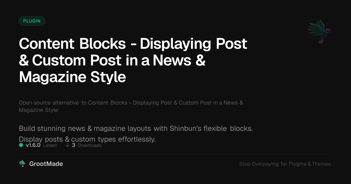 | Forked from | Content Blocks - Displaying Post & Custom Post in a News & Magazine Style |