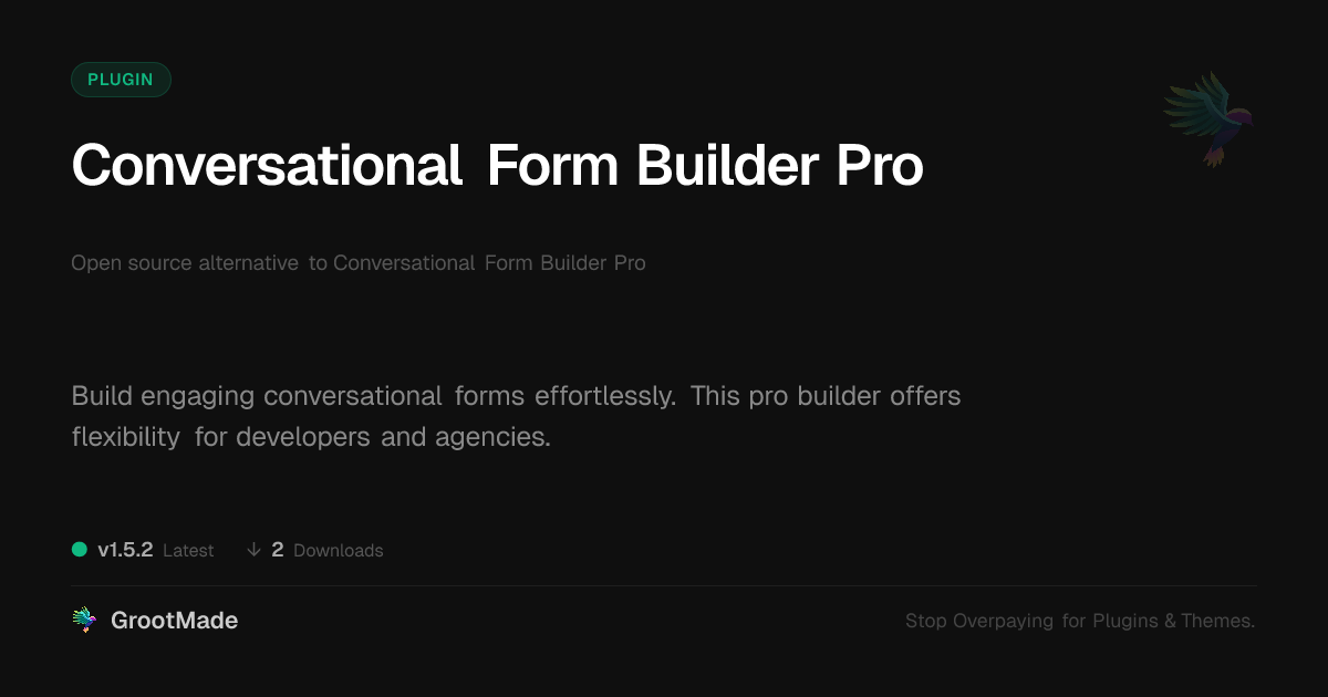 GrootMade is not affiliated with Conversational Form Builder Pro and provides an open-source alternative.