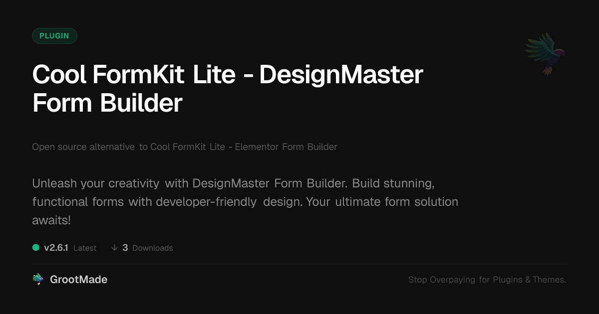 | Forked from | Cool FormKit Lite - Elementor Form Builder |