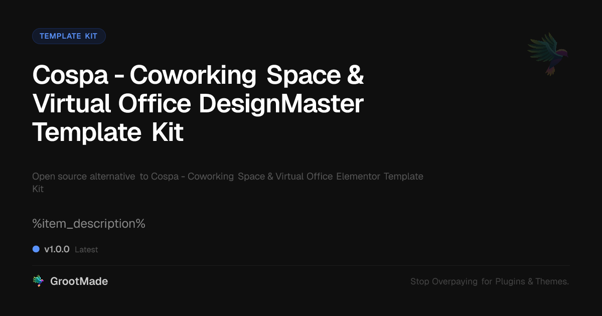 GrootMade is not affiliated with Cospa - Coworking Space & Virtual Office Elementor Template Kit and provides an open-source alternative.