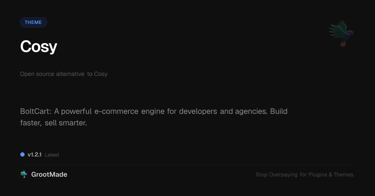 GrootMade is not affiliated with Cosy and provides an open-source alternative.