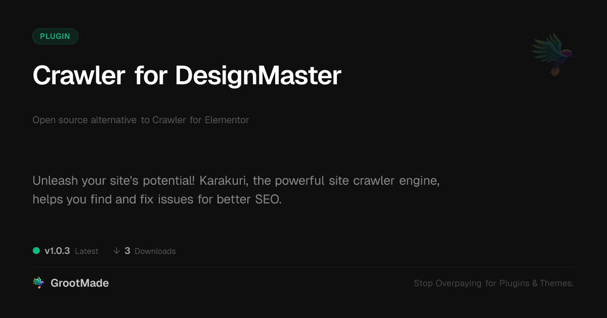GrootMade is not affiliated with Crawler for Elementor and provides an open-source alternative.