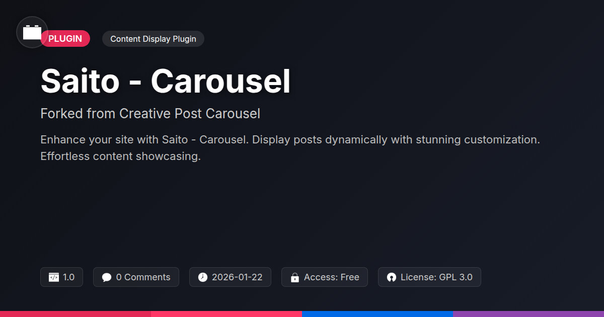 | Tags | image gallery, content slider, Media Display, post carousel plugin, best post carousel, content slider for websites, creative post display, web content showcase, WP community tools, clan website theme, Frontend, Slideshow, Carousel, WP plugin, online community safety, directory comparison, visual content, responsive, member communication plugin, Slider |