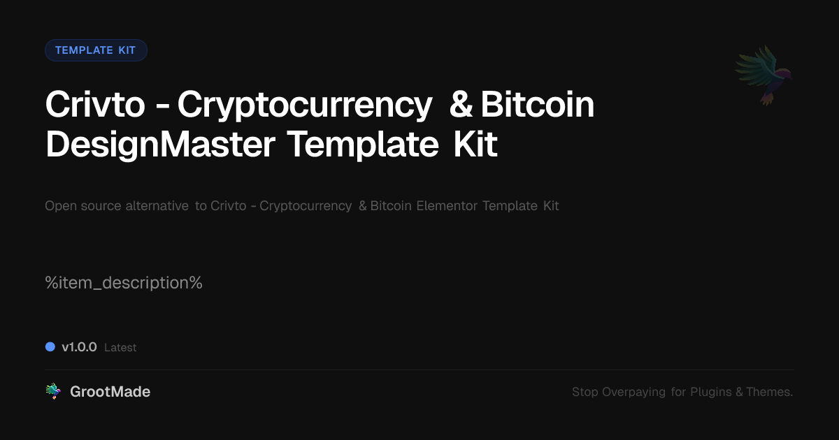 GrootMade is not affiliated with Crivto - Cryptocurrency & Bitcoin Elementor Template Kit and provides an open-source alternative.