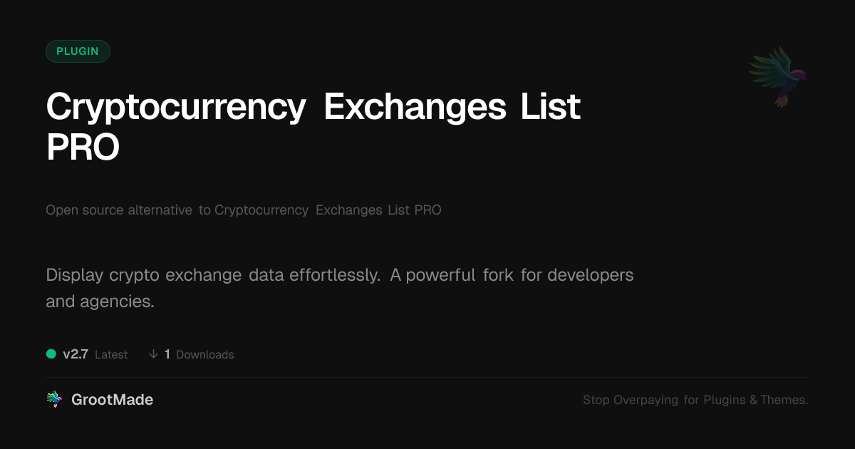 | Tags | plugin development, developer resources, crypto exchange data, web tools, gallery discoverability, Marketplace, Peer To Peer, Commerce, Exchanges, Trades, Swaps, Product Exchange, User Trades, Trading Platform, Barter, open source, member profile enhancements, profile tab builder, member communication plugin, user role visibility, user contact form |