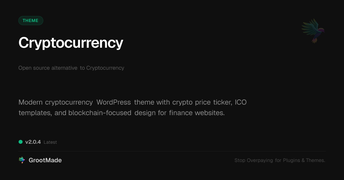 | Tags | finance, search enhancement tool, map for website, analytics tracking, creator framework, content locking plugin, tax compliance tool, Wallet, Ethereum, Trading, Blockchain, Investment, Payment Gateway, Cryptocurrency, Bitcoin, publish scheduler, customizable job listings, online community safety, member profile enhancements, Digital Currency |