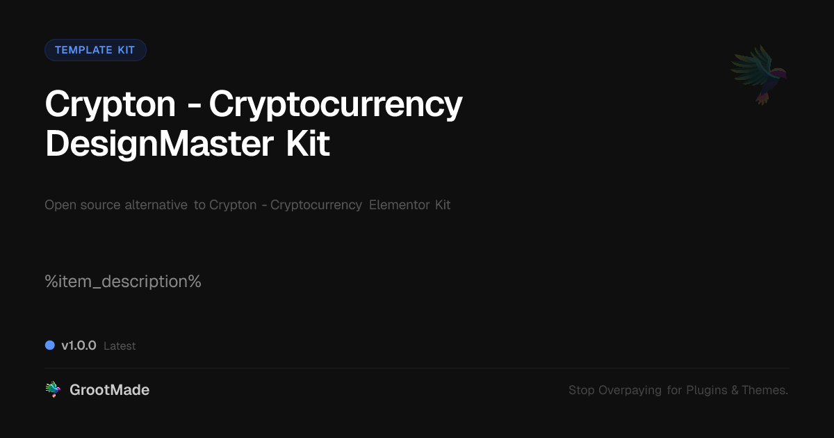 GrootMade is not affiliated with Crypton - Cryptocurrency Elementor Kit and provides an open-source alternative.