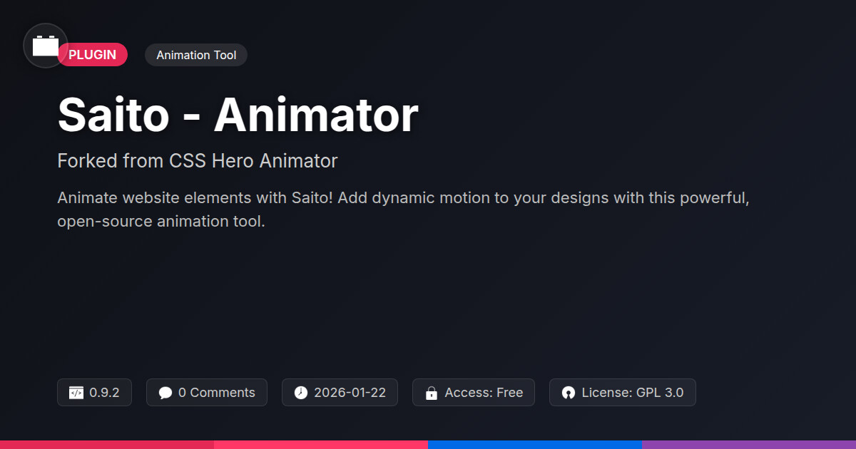 | Tags | motion effects, web design, animation plugin, visual effects, web animation, interactive design, css animation, no-code animation, WP community tools, gallery plugin development, clan website theme, php platform, Developer Tools, Frontend, Animations, Animation Library, user experience, recent profile visitors, member communication plugin, user contact form |