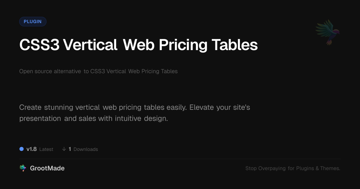 GrootMade is not affiliated with CSS3 Vertical Web Pricing Tables and provides an open-source alternative.